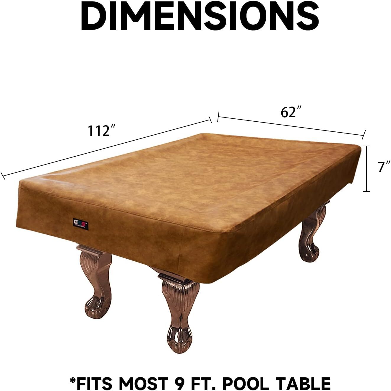 Dimensions: The billiard table covers without drape measure 112" x 62" (Edge to Edge), side drape is 7" from the top. It fits most 9 ft pool table.