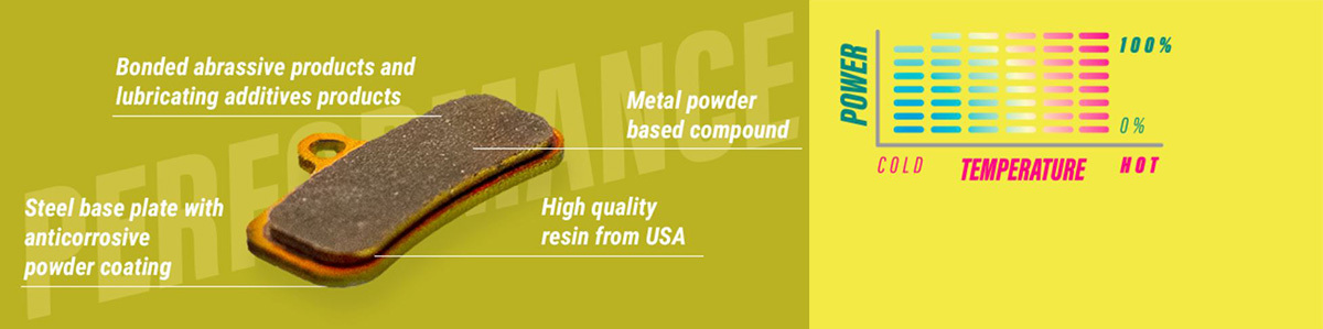 The Powerful pads are, unsurprisingly, their most powerful offering. They are a sintered compound, recommended for eMTB, Enduro and Downhill applications. Their claim is that the pads provide maximum braking power at any temperature and at any level of humidity. The resin is USA-made composed of bonded abrasive products with lubricating additives.