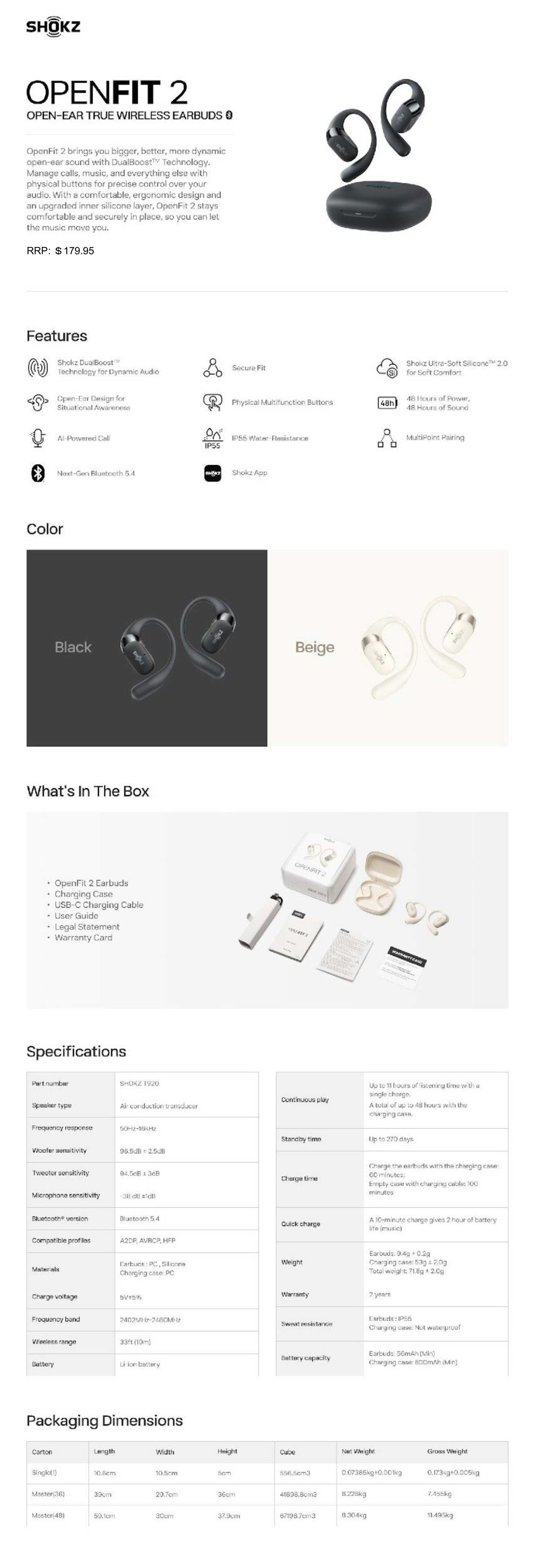 OpenFit continues the Shokz open-ear concept to let users enjoy all-day comfort and hear their own soundtrack while staying open to the world around them. OpenFit offers an ultra-lightweight, open-ear construction to hear both your own audio and every sound around you with crystal clarity. DirectPitch™ technology produces a full audio experience to immerse yourself in your favorite songs, podcasts, and audiobooks. A flexible ear hook design combines stability and comfort. Moments are precious, and OpenFit gives you the freedom to hear every one of them.