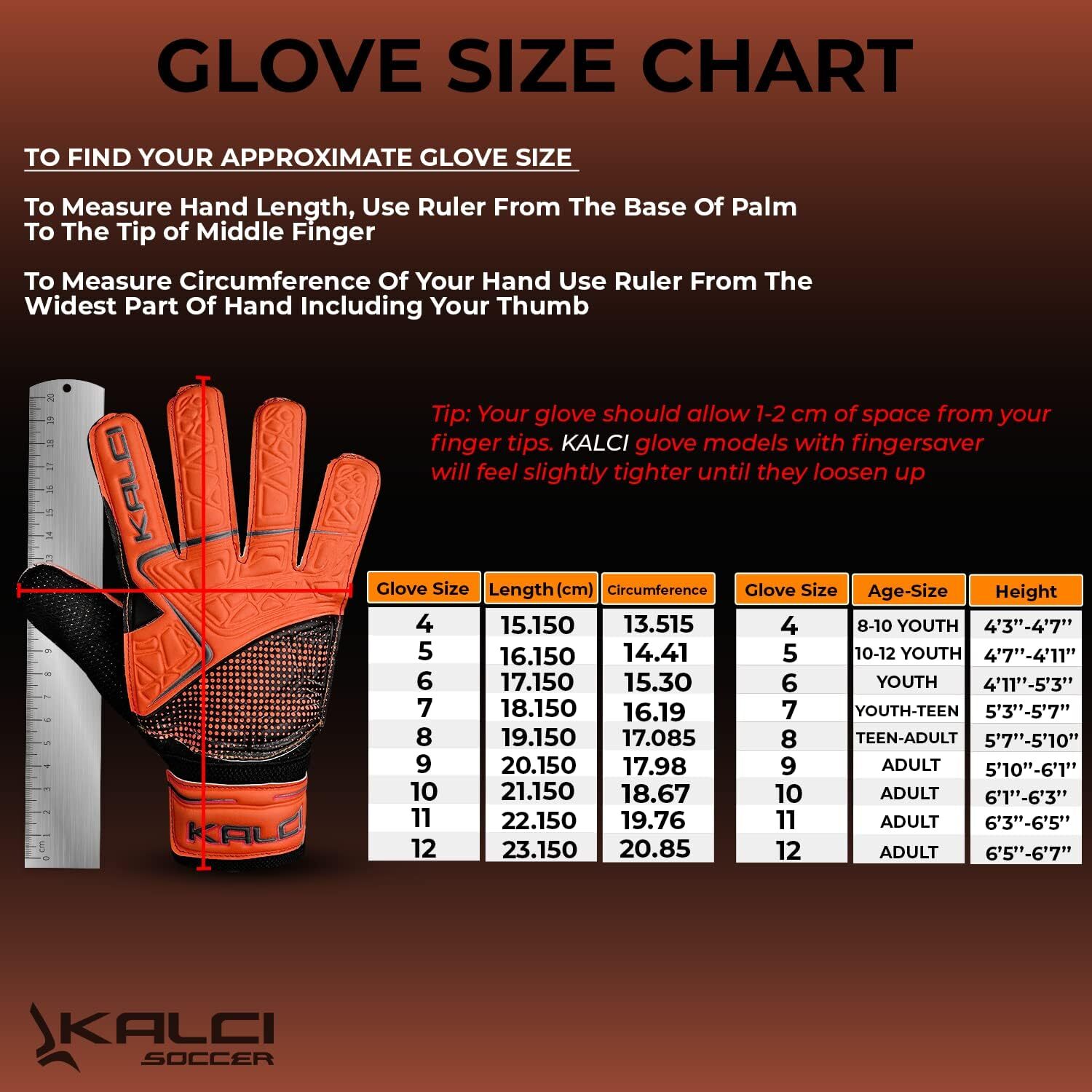 Soccer Gloves Youth/Adult for Ultimate Grip & Protection Orange Size 9